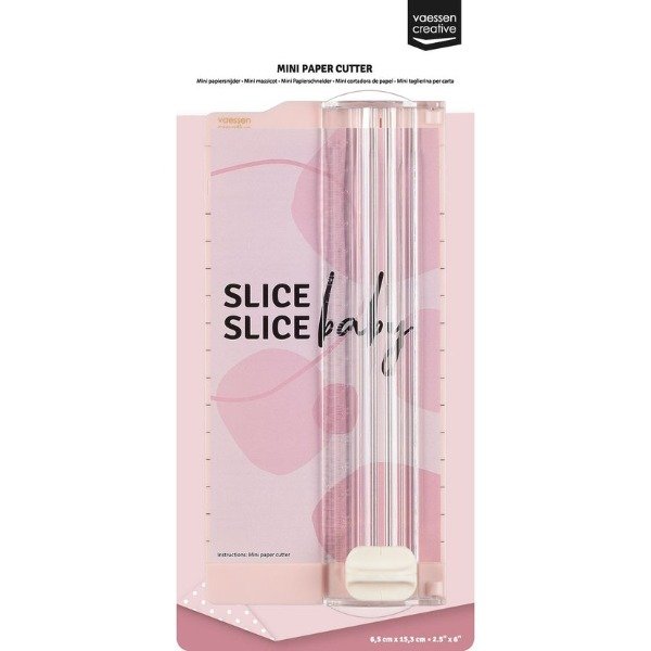 La mini Cizalla Rosa 6" tiene un tamaño chiquito, para cortar papeles de un máximo de 15 cm de alto..